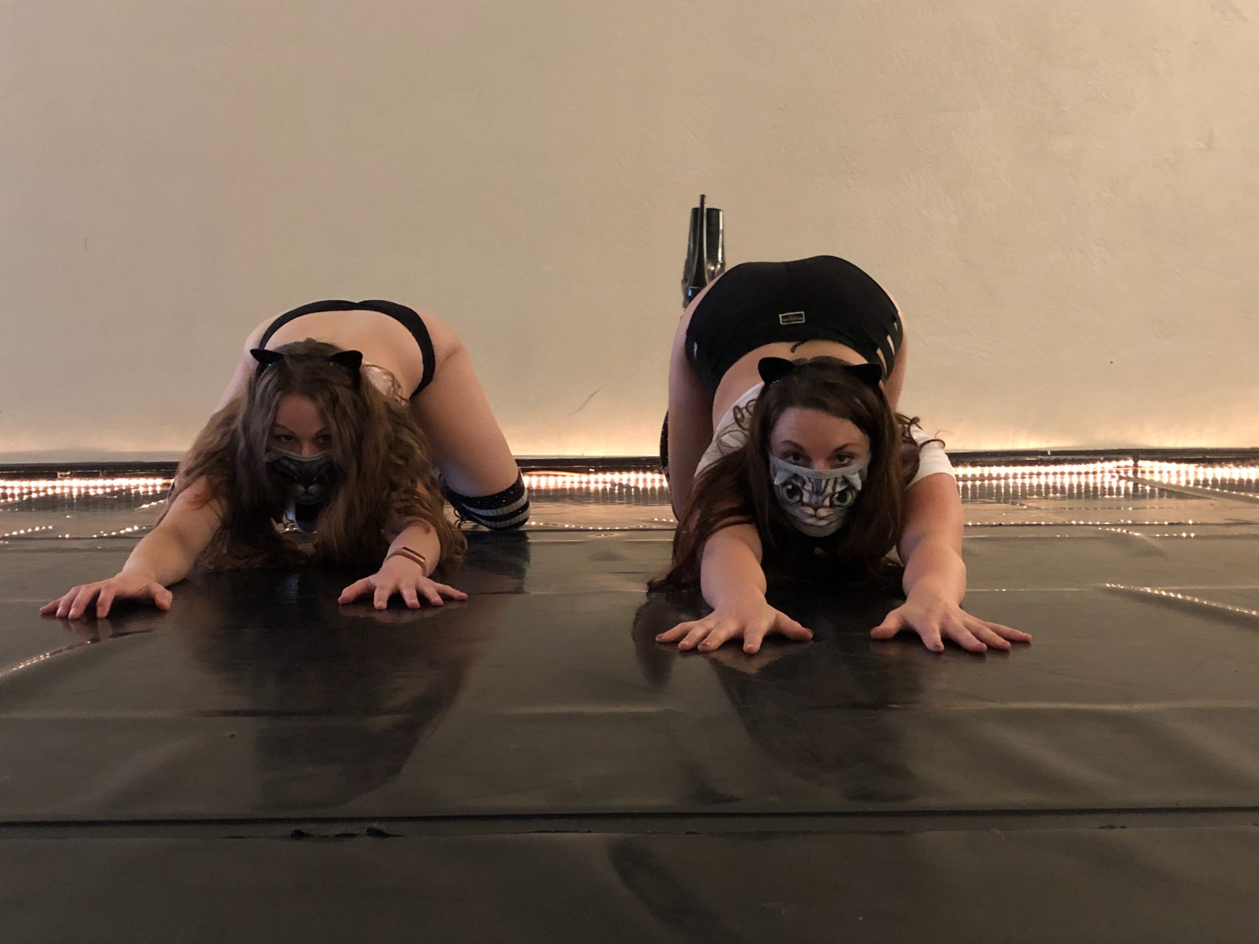 Currently, we are limiting classes to 5 students so everyone can have their own pole. You can reserve your space in class by calling, texting, emailing, or messaging us on social media. If you want to drop in but haven’t reserved a space, just get in touch with us to see if there is an opening before you come.